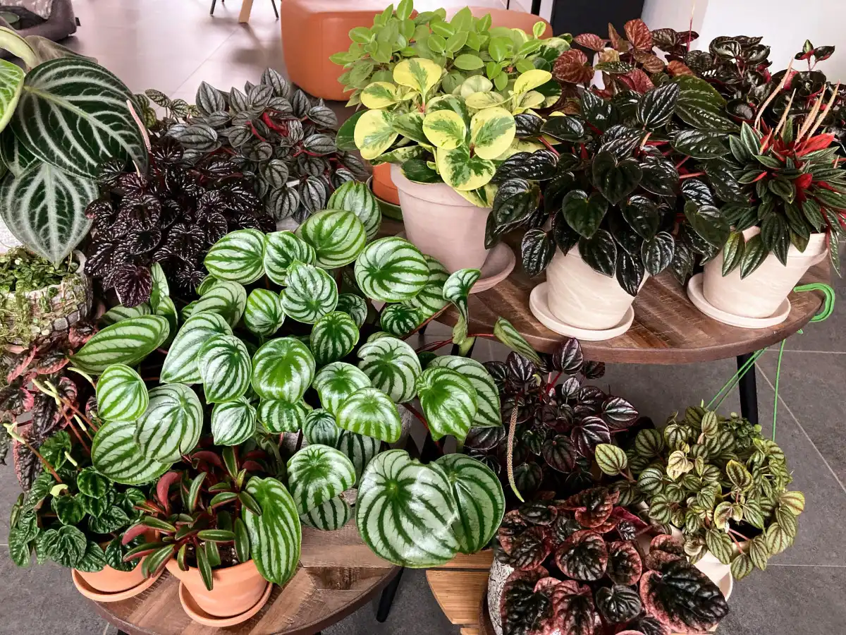 Пеперомії настільки різноманітні, що можна складати композиції з різних видів, отримуючи контрасти форми, кольору, структури. Стелажі-перегородки із набором різних пеперомій завжди привертають погляд.
