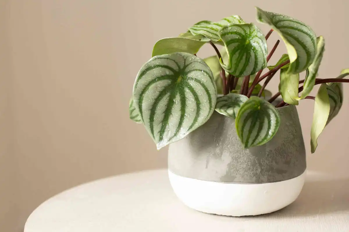 Пеперомія срібляста (Peperomia argyreia), або кавунова - компактна рослинка з краплеподібними кавуново-розфарбованими сріблясто-зеленими щільними листочками на червоних черешках. Забарвлення формується яскраво-зеленими жилками та сріблястим основним забарвленням листа. Виглядає купкою міні-кавунчиків і неймовірно гарна на робочому столі або інших відповідних поверхнях.