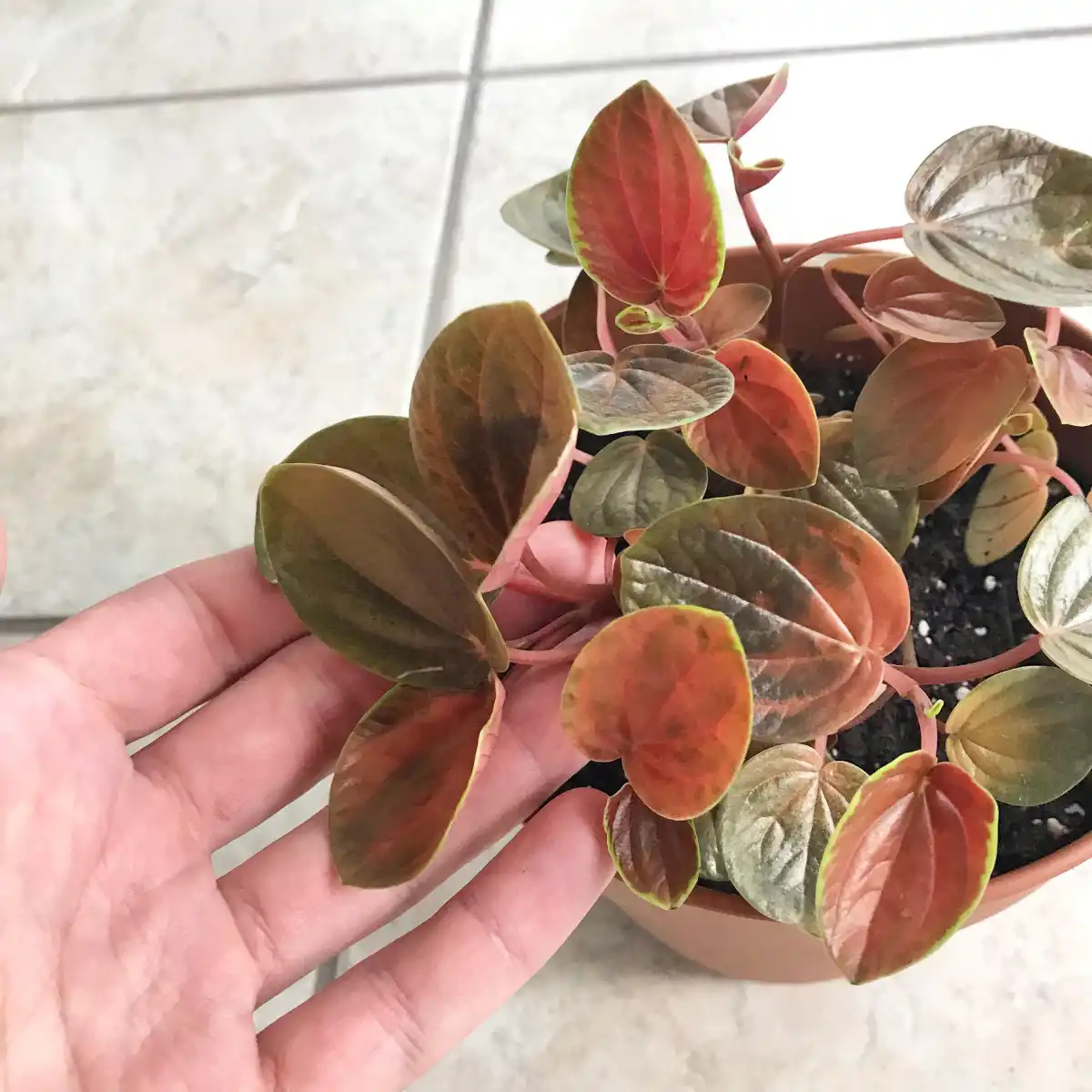 Це про конкретні види. Селекція йде семимильними кроками і в продажу можна зустріти сорти перерахованих пеперомій з пофарбуванням, що помітно відрізняється. Настільки помітно, що, наприклад, у пеперомії мармурової «Марбл Пінк» (Marble Pink) на яскравому світлі (але не на прямому сонці!) відростають темно-зелені листочки з яскраво-рожевими хаотичними плямами. Сріблястого кольору немає.