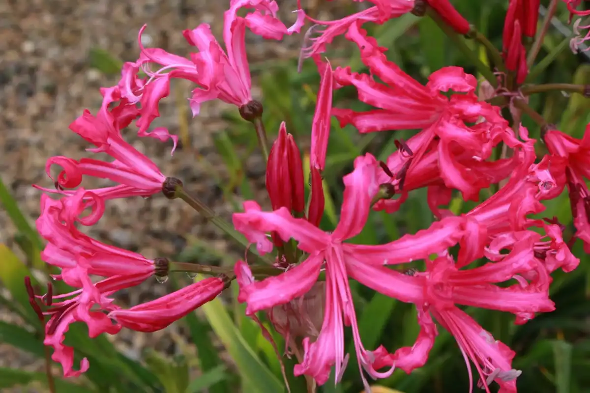 З такої великої цибулини виростає рослина до 45 см заввишки. Рослина дає масу ременевидного зеленого листя, над яким у липні та вересні з'являються грона рожевих і білих трубчастих квіток.