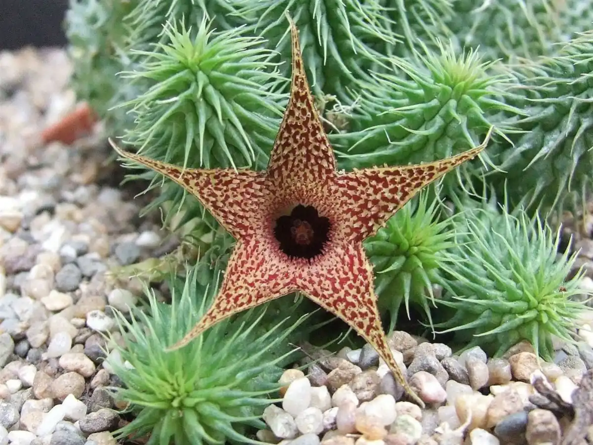Особливо дивно виглядають квіти. Вони м'ясисті, бородавчасті, схожі на зірку, дзвіночок або корону, діаметром не більше 7 см. Забарвлення може бути бордовим, пурпуровим, білим, жовтуватим, часто з крапом або смугами. Головний недолік - у деяких видів квітки випромінюють неприємний запах.