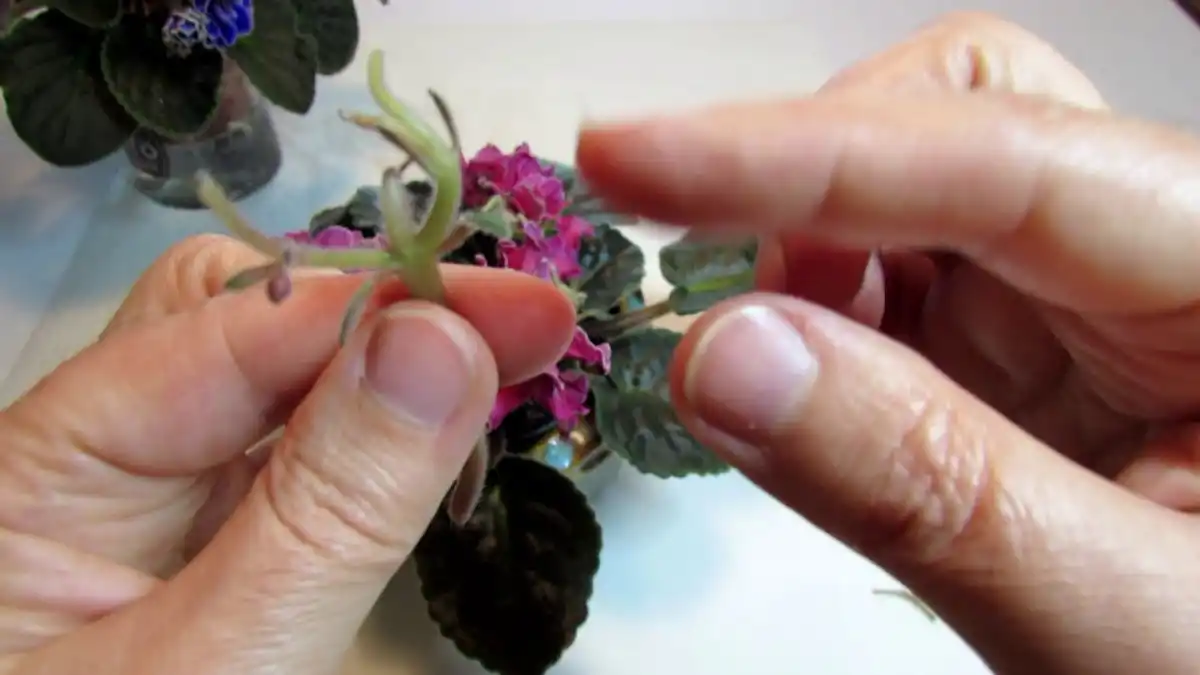 Якщо химерна власна фіалка, можна піти іншим шляхом: общипати квітки, не видаляючи квітконос. Фіалка росте собі, як росла і згодом на квітконосі відросте пасинки. По можливості квітконіс опустити та закріпити на субстраті, щоб пасинки відрощували там свої коріння. Але можна після досягнення 4-сантиметрового розміру малюків відокремити та вкоренити.