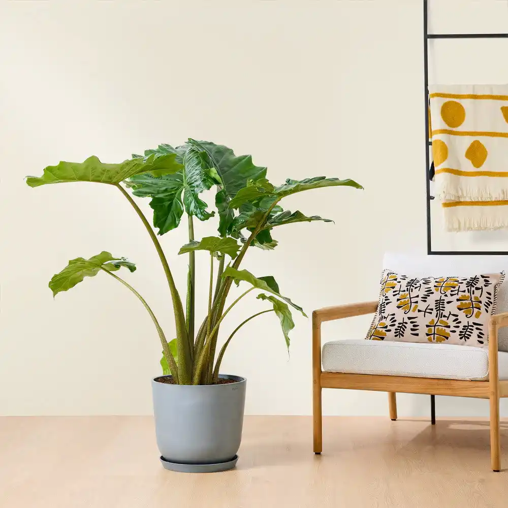Алоказія (Alocasia) представлена безліччю різних видів і сортів, але всі вони мають велике листя з добре вираженими прожилками. Іноді квітка називають «слонове вухо», оскільки соковите листя нагадує вушка слоненя. У дорослих екземплярів вони виростають до 1,5 метрів у довжину, залежно від сорту. Ця рослина досить невибаглива в догляді, але може вимагати обрізання сухого побурілого листя в холодні місяці.