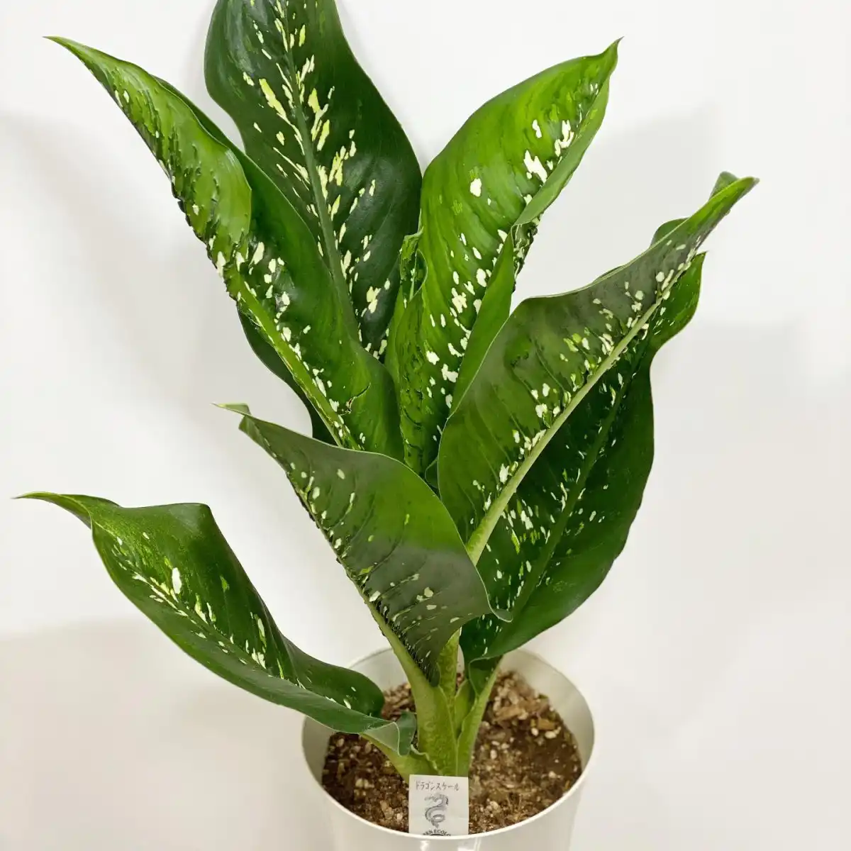 Диффенбахія давно відома як кімнатна рослина, що не вимагає особливого догляду. Новий сорт диффенбахії "Драгон Скейл" (Dieffenbachia 'Dragon Scale'), або "Шкура дракона" відрізняють ефектні оборки вздовж середніх ребер листя. Славиться він і характерним малюнком, схожим на луску дракона.