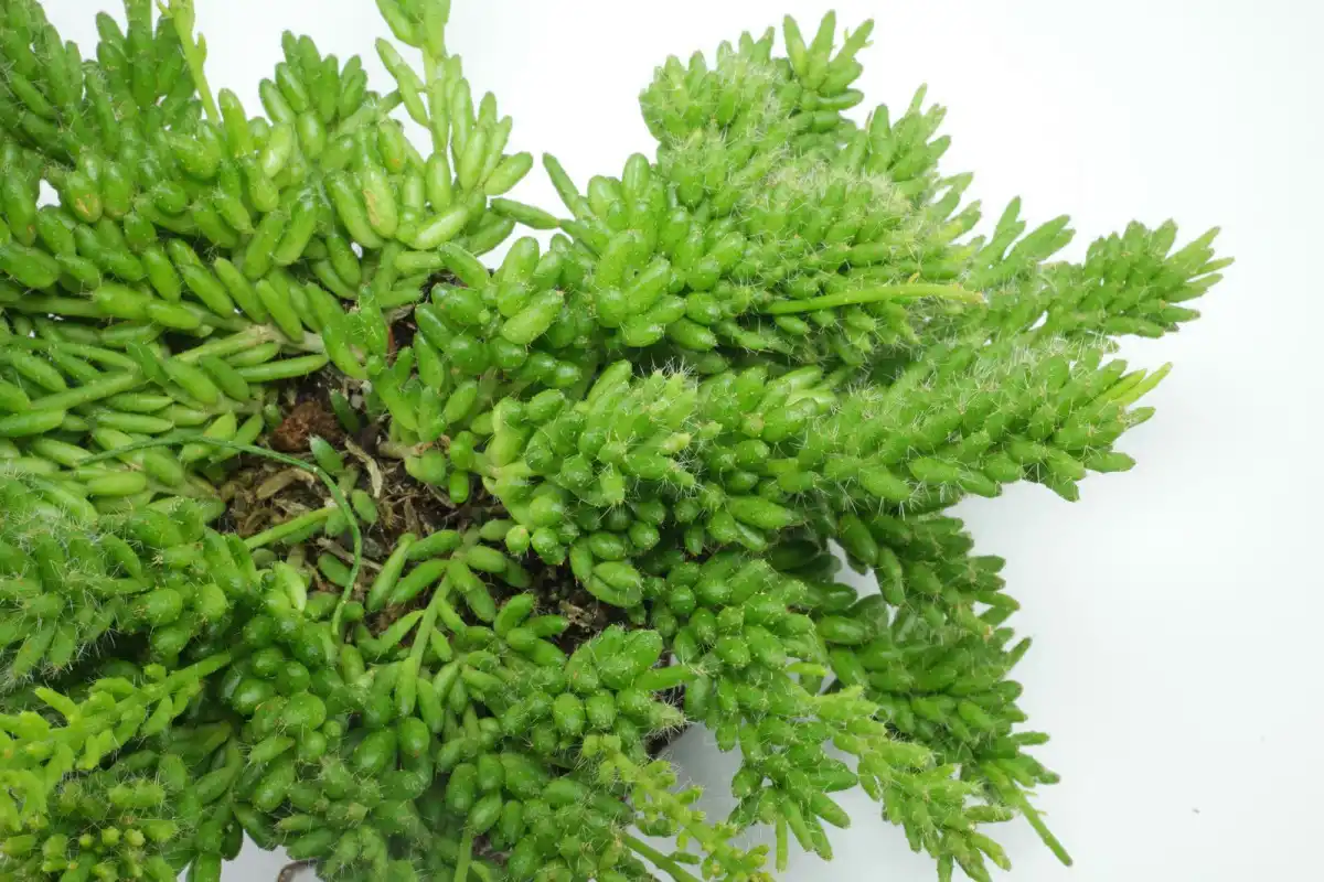 Унікальний епіфітний кактус, який відрізняється тонкими, подовженими і розгалуженими стеблами. Пагони рипсалісу мезембріантемового (Rhipsalis mesembryanthemoides) зелені, циліндричні і покриті крихітними щетинками. Такі особливості надають рослині м'який і пухнастий вигляд. Під час цвітіння на стеблах з'являються невеликі білі квітки, що додає йому чарівності.
