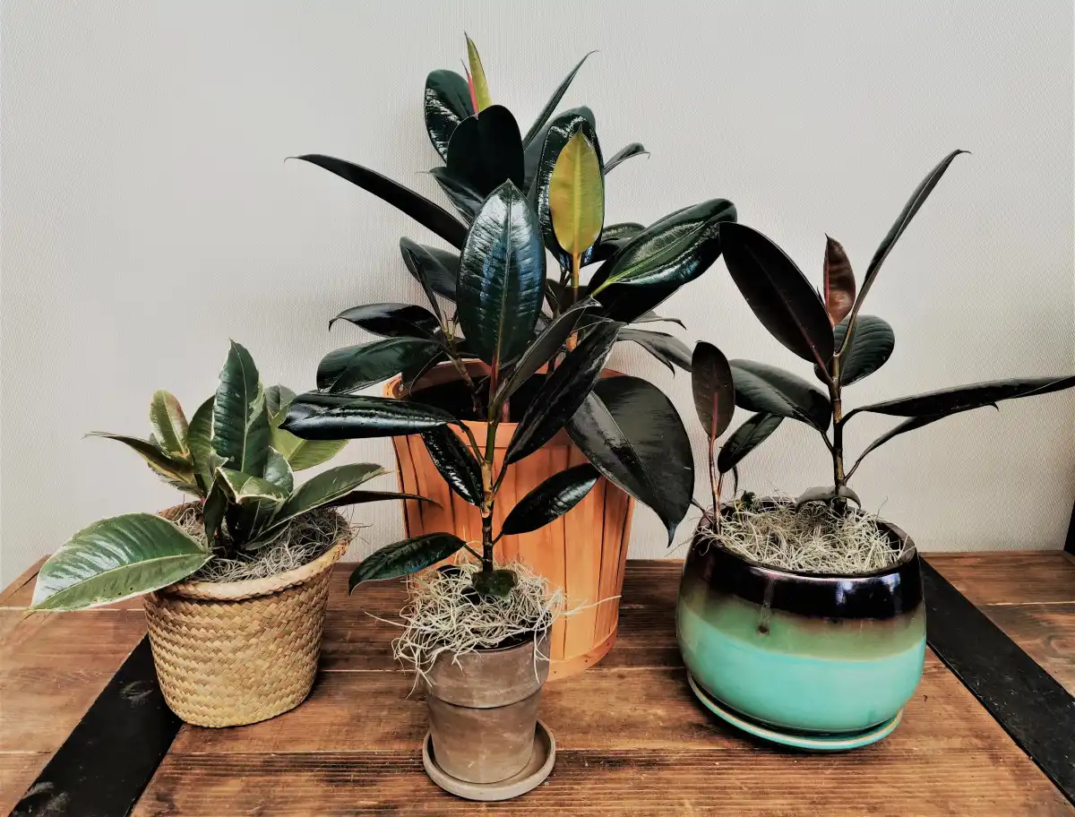 Фікус каучуконосний (Ficus elastica) - широколистяний вічнозелений чагарник або дерево. У дикій природі легко виростають до 30 метрів у висоту. Рослина відома товстим, шкірястим, блискучим, темно-зеленим листям. У приміщенні фікус легко проживе 25-50 років. Однак майте на увазі, що мліковий сік цієї квітки токсичний для свійських тварин.