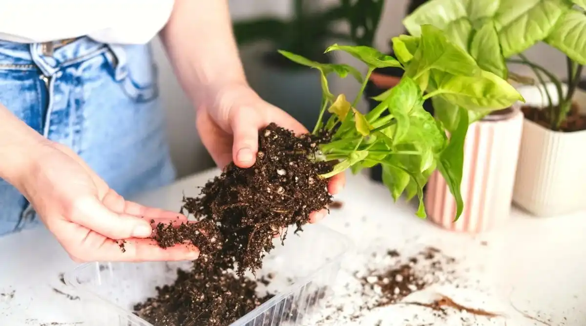 Пересадку кімнатних квітів проводите, по можливості, методом перевалки з максимальним збереженням земляної грудки — так ви зведете до мінімуму пошкодження кореневої системи. Не забувайте, що будь-які пошкодження тканин — «вхідні ворота» для інфекції!