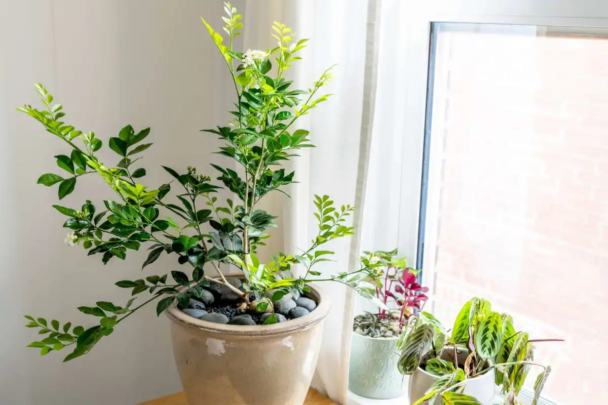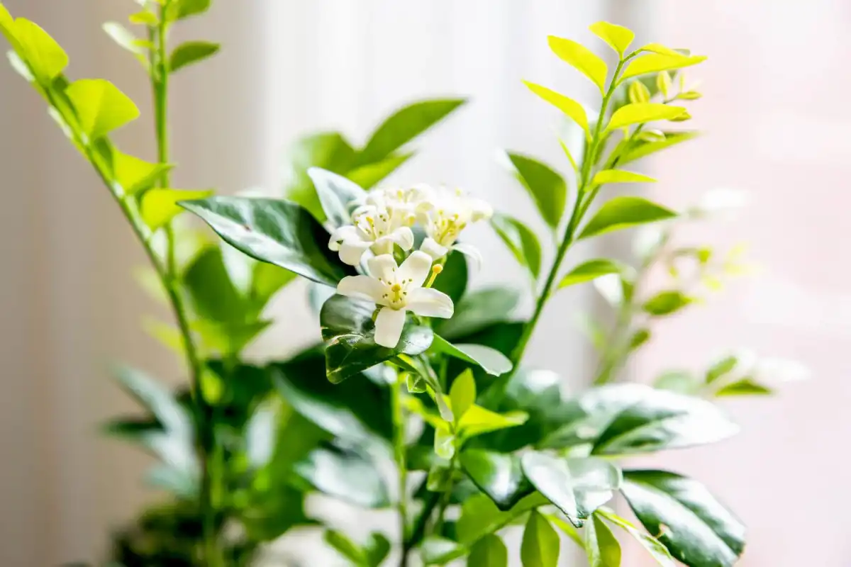 Коли муррайя хуртовина (Murraya paniculata) не цвіте, то перетворюється на красиву, але просту листяну рослину. А ось під час цвітіння «помаранчевий жасмин» дарує квітки з приємним запахом ноток апельсина і жасмину. Листя теж має аромат, але не настільки вираженим. Деревце виростає до 2 метрів заввишки. Квітки змінюються на красиві червоні ягоди. Вони їстівні, але дозрівають дуже довго, при цьому кісточка отруйна. Мурай любить світло і високу вологість. Дайте поверхні ґрунту висохнути між поливами.