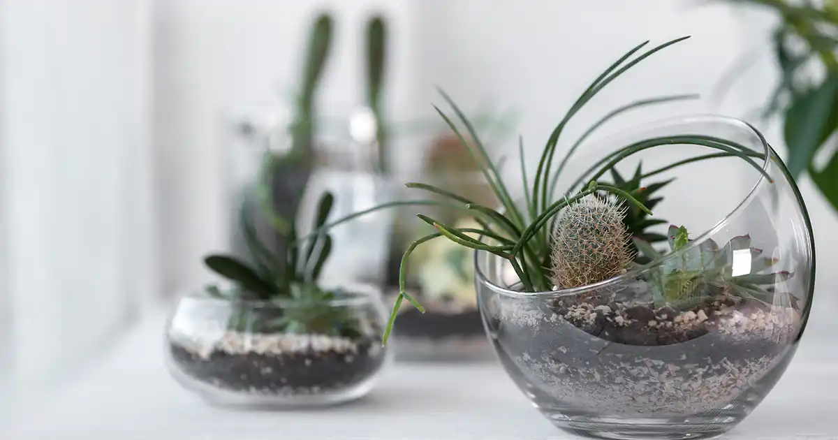 Форма і розмір горщиків для кактусів можуть бути різними. Єдине, чого треба уникати, то це високих «склянок». Незважаючи на пухкий субстрат та дренаж, у них постійно застоюється вода, а сукуленти цього не переносять. З тієї ж причини, на дні потрібні великі дренажні отвори. Зазвичай для кактусів вибирають невисокі трапецієвидні горщики з хімічно інертних матеріалів – кераміки чи пластику. Невеликі пустельні кактуси добре виглядають групами в широких мисках.