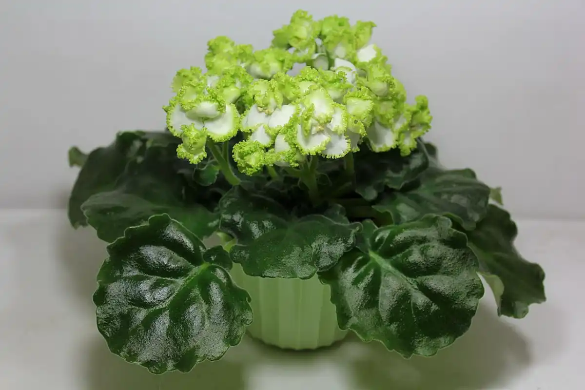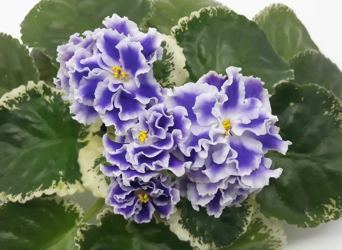 У махрових фіалок великі пелюстки розташовані кілька ярусів. Сорт "Купідон" (Saintpaulia 'Cupidon') - незвичайна фіалка з махровими білими квітками, облямованими зеленою смугою.