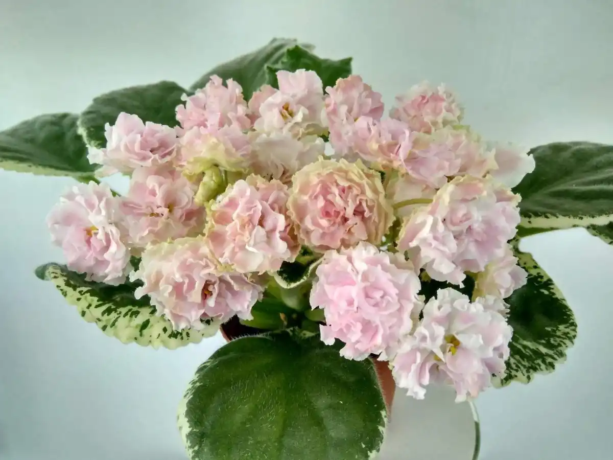 Сорт «Рубс Булару» (Saintpaulia 'Rob's Boolaroo') з напівмахровими світло-рожевими квітками з дрібними рисочками фіолетового кольору, цвіте практично постійно!