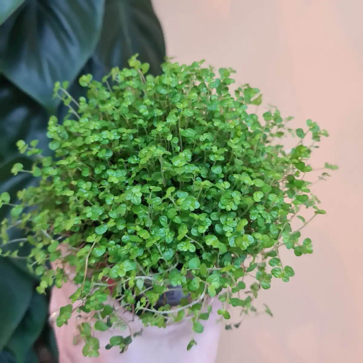Повзучий килимок із крихітних зелених листочків – солейролію (Soleirolia soleirolii). Вона чудово підійде для флораріумів, невеликих підвісних кошиків і як рослина-компаньйон біля кадкових кімнатних дерев. Солейролія покриває ґрунт і може відлякати свійських тварин, які люблять копатися в ґрунті.