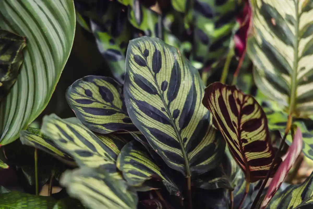 Калатея (Calathea spp.) має велике тропічне листя з чарівними смугами або пунктиром. Це відмінний вибір для тінистого місця в будинку, де мешкають з домашніми тваринами, оскільки занадто багато світла може призвести до блідості кольору листя. Тим не менш, вони не найпростіші у догляді кімнатні рослини.