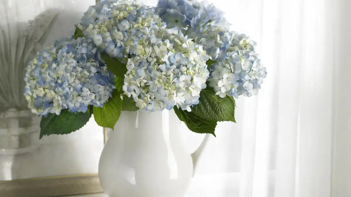 Гортензія легко простоїть у вазі кілька тижнів. Але варто вибирати ті гілочки, на яких шапки вже повністю розпустилися, тому що на зрізаній квітці бутончики вже не розкриються.