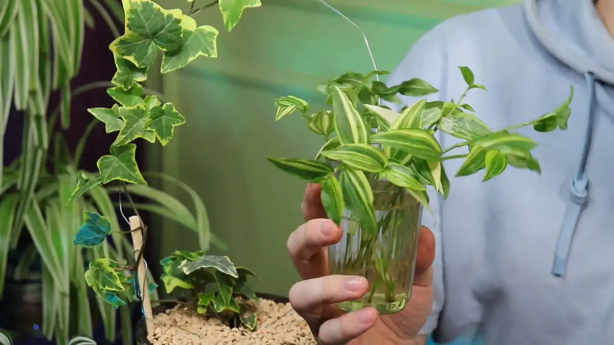 Друга рослина, на яку варто звернути увагу – традесканція. Це трав'янистий багаторічник із прямими чи повзучими пагонами. Традесканції також відрізняються за формою, розміром та забарвленням листя. Спільними для всіх різновидів є швидке зростання та невибагливість. Традесканція і розмножується дуже легко, будь-яка втеча, що зрізає, швидко утворює коріння в банку або склянці з водою або відразу у вологому грунті.