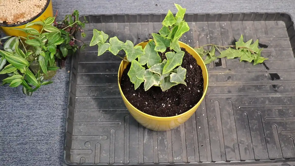 При посадці плюща важливо не заглибити кореневу шийку. І пересаджені, і плющі, що вже ростуть, не варто «заливати», оскільки це призводить до розвитку кореневих гнилей. Влітку ґрунт повинен залишатися злегка вологим, а взимку поливи проводять при глибокому просиханні ґрунту. Влітку, як правило, вистачає одного поливу на тиждень, а взимку за 10-12 днів.