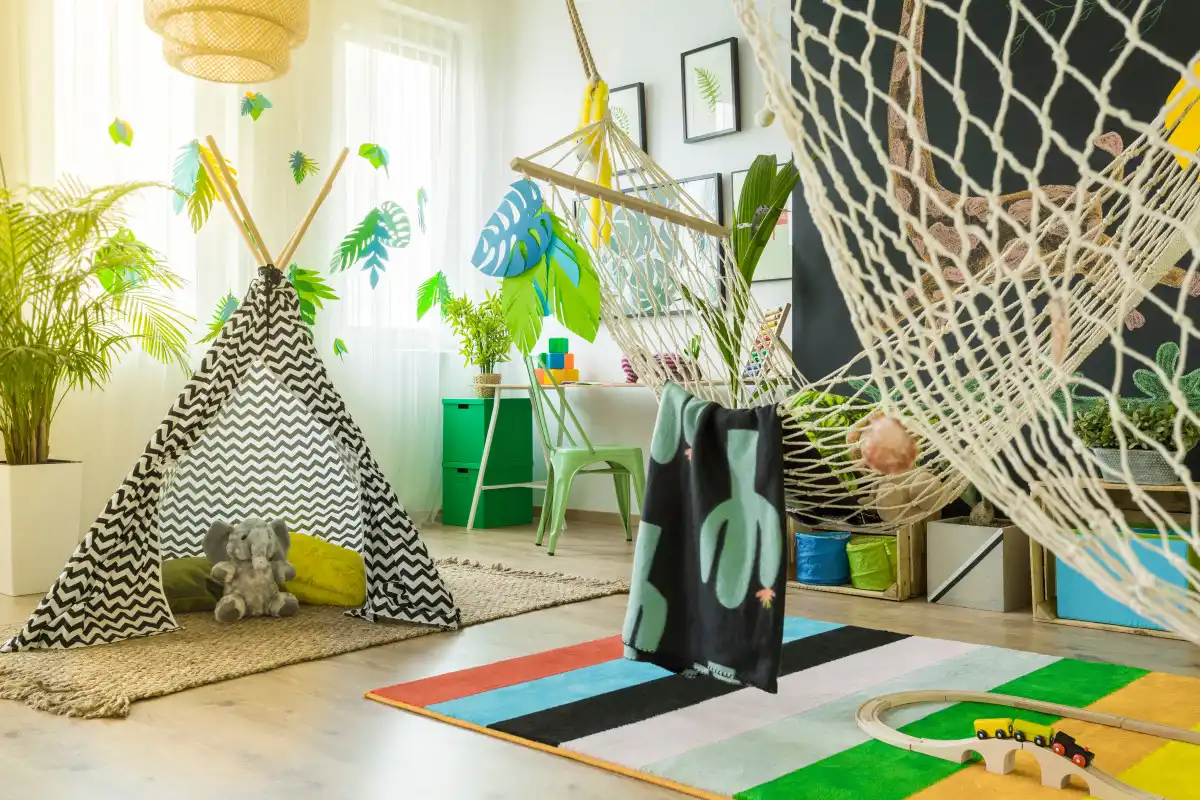 Зверніть увагу на кольори в інтер'єрі. Наприклад, поєднання рожевого та зеленого завжди привертає увагу. Або однотонні темні чи світлі стіни. Красиво виглядають фотошпалери з рослинними мотивами на одній із стін кімнати.