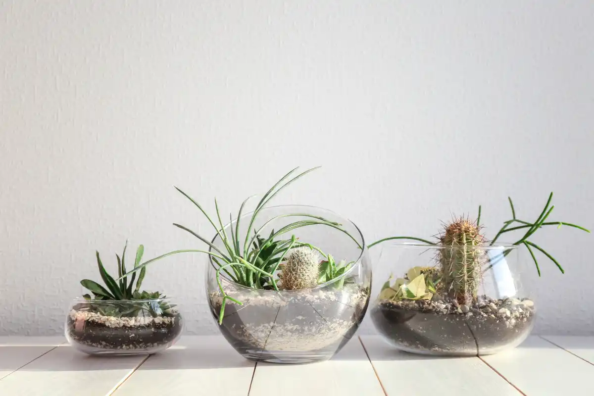 Оригінальні рішення та незвичайні предмети стали важливою особливістю тренду. Адже кактуси, наприклад, можна посадити в старі чайні чашки (не забудьте про дренаж) або інший непотрібний посуд. Крім того, для кактусів та інших сукулентів можна звичайні горщики з необпаленої глини розфарбувати вручну в єдиному стилі. Тоді, ціла компанія «колючих друзів» чудово виглядатиме. Родзинкою концепції "міські джунглі" може стати і флораріум.