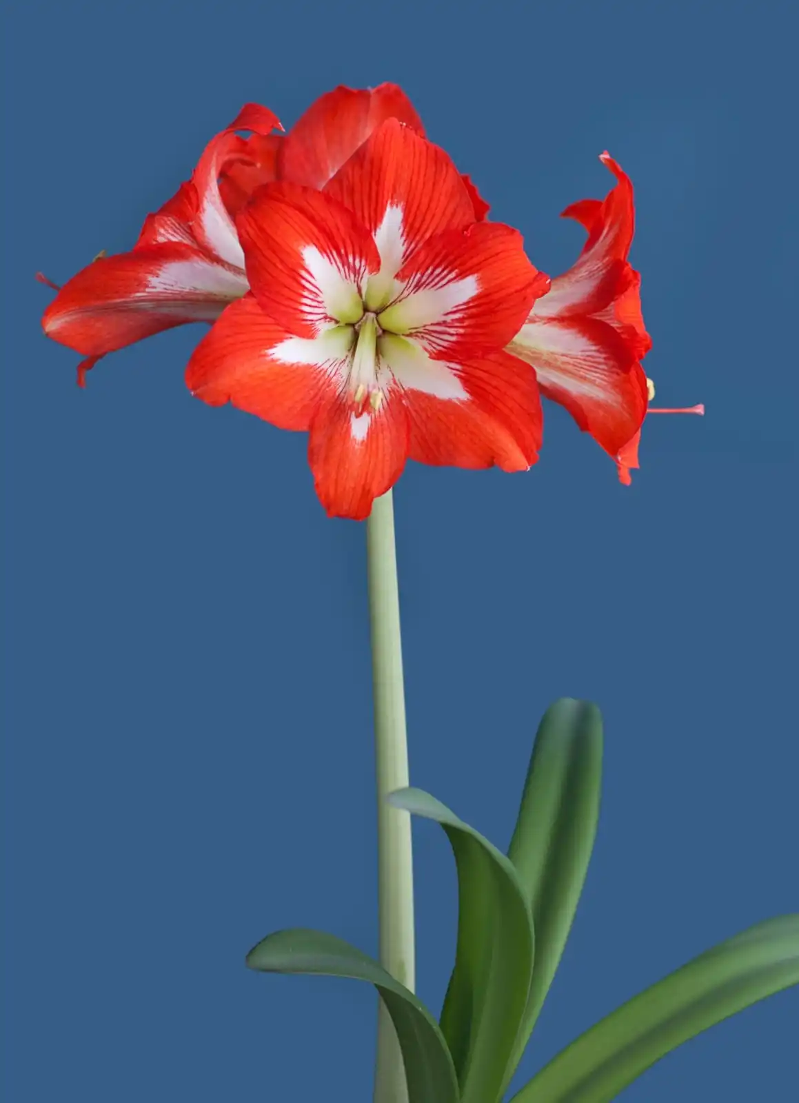 Величезні цибулини цього сорту випускають по парі квітконосів, що увінчуються 3-4 квітками в пухкому суцвітті. Але не висота в 60-70 см, а яскраво-червоні квітки з білою «зіркою» та зеленим у зіві, середні, діаметром до 15 см, роблять сорт тяжінням для погляду.