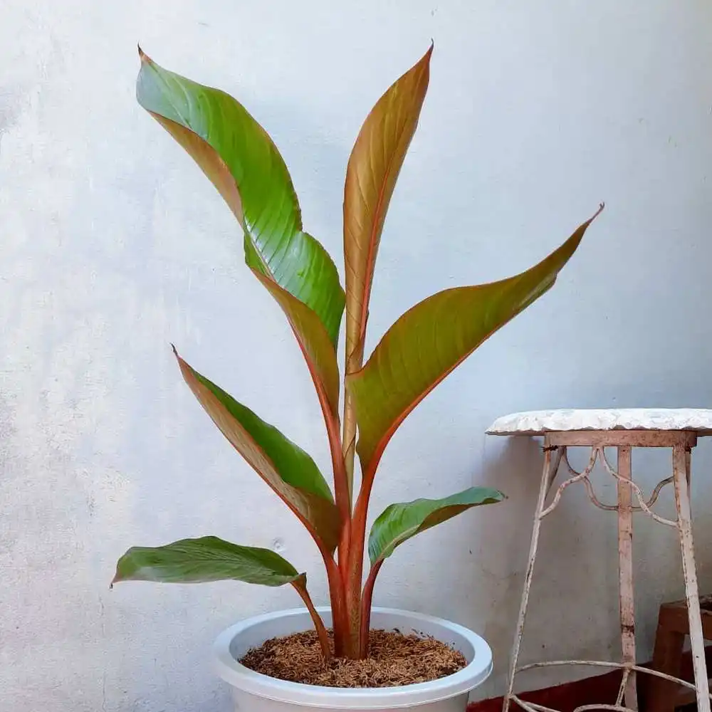 - Індійська геліконія (Heliconia indica) - Високий вигляд з коричнево-пурпурним листям від 120 см завдовжки, з напрочуд тонкими прямими квітконосами і помаранчевими або червоними приквітками.