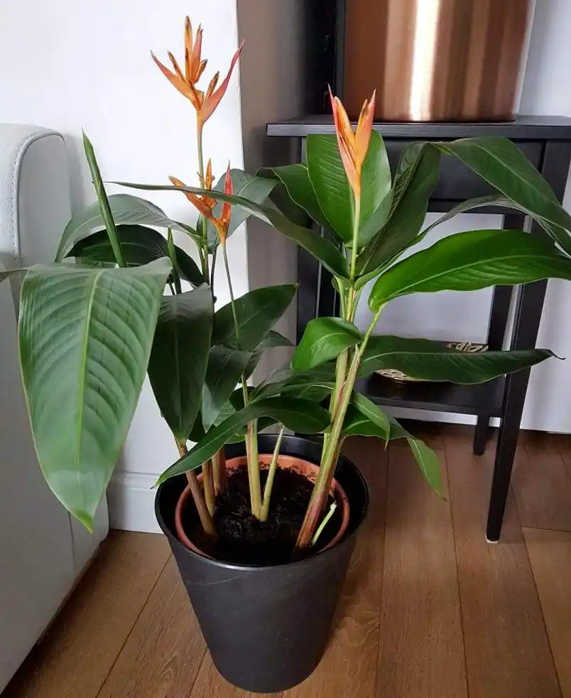 Геліконію вимагає широких, просторих, стійких (важких) горщиків. Через швидке зростання коренів ємності при пересадці збільшують на 5 см.