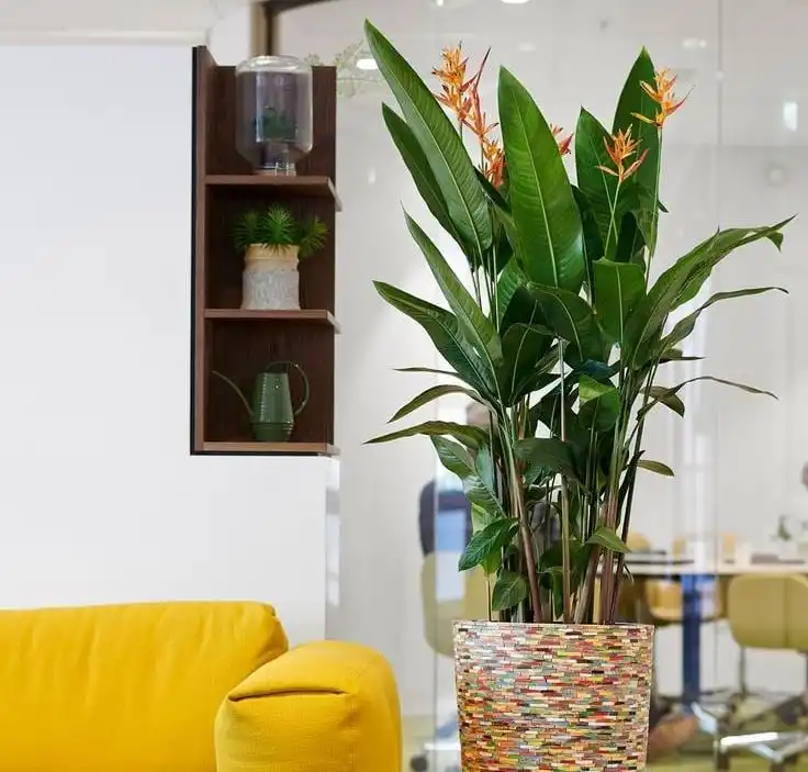 Геліконії (Heliconia) - Екзотичні кореневищні багаторічники з однойменного сімейства Геліконієві (Heliconiaceae). Вони швидко ростуть, особливо активно розвивається кореневище, що утворює численні нащадки та створює групи чи колонії. Кожна точка зростання випускає одне суцвіття, що розвивається з утвореного піхвами черешків листя хибного стебла.
