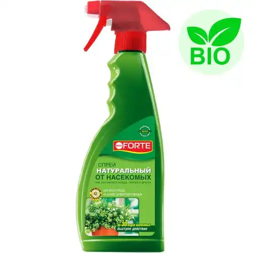 У кімнатних умовах для боротьби з паразитами бажано використовувати інсектоакарициди, які будуть не просто ефективними, а й безпечними для мешканців. Спрей Bona Forte на основі піретруму має обидві ці якості. Він знищує і комах-шкідників, і павукоподібних (кліщів). Діє препарат протягом кількох годин, а зручний розпилювач допомагає якісно обробити найщільніший і найпишніший кущ.