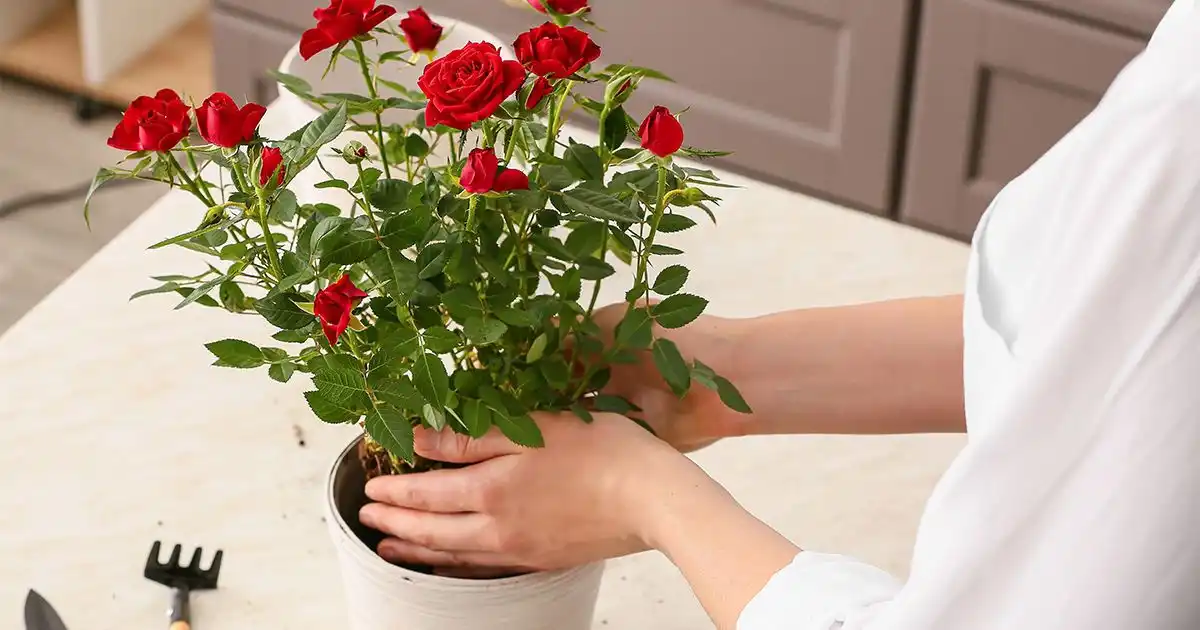 Пересаджуйте здорову кімнатну троянду тільки в кінці зими або на початку весни, поки у неї не розпочалося активне зростання. У період вегетації навіть ваші правильні дії можуть призвести до пожовтіння деяких листків та загального відставання рослини у розвитку. Ну і вибирайте для квітки якісний субстрат і правильний горщик, щоб вона змогла швидко адаптуватися до нового місця.