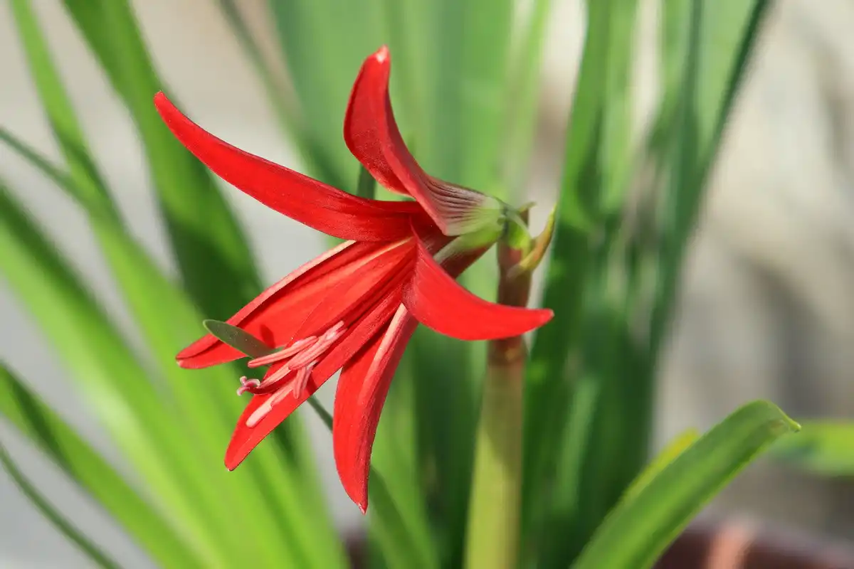 Прямі, порожнисті, червоні квітконоси піднімаються на висоту до 35 см і здаються дуже витонченими. На верхівці квітконоса розпускається одна або пара лійчастих квіток до 15 см в діаметрі. Яскравий, насичений, малиново-червоний відтінок — не єдине, чим привертає увагу сперекелія.