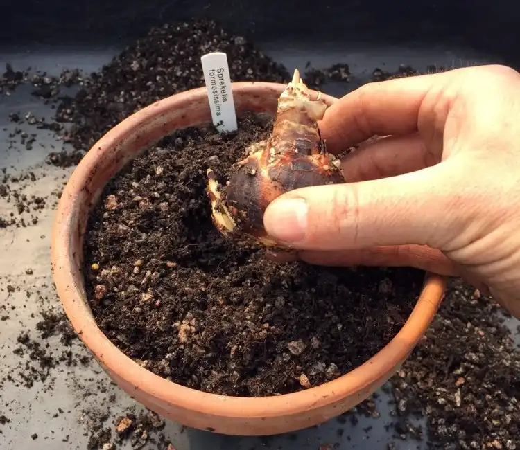 Найпростіший спосіб розмножити спрекелію – відокремити дочірні цибулини при пересадці рослини.