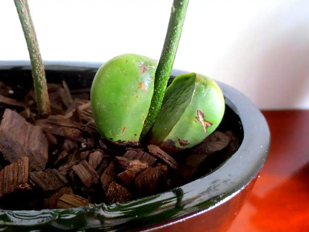 Навіть при температурі від 17 до 25 градусів та стабільній вологості під ковпаком появи паростка доведеться чекати дуже довго: часто укорінення займає 5-9 місяців. Можна спочатку проростити боб у перліті чи сфагнумі.