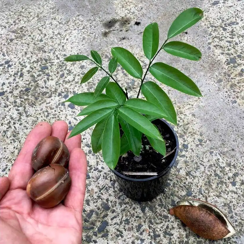 Плоди - губчасті стручки-циліндри до 25 см в довжину і 6 см в діаметрі. Містить темне насіння розміром до 3,5 см, що чимось нагадує зелені каштани. Їстівне насіння після складної обробки та подрібнення довгі тисячоліття було однією з найцінніших харчових культур аборигенів Австралії та Океанії.