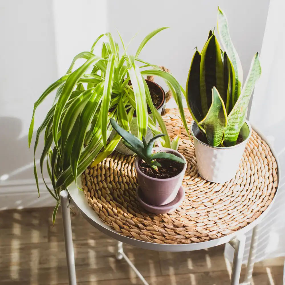 Повітря в приміщенні очищають гібіскус, абутилон, сансів'єра, алое, хлорофітум, драцена, лимон, фікус, мирт, бегонія, розмарин, аспарагус та багато інших рослин. Найпопулярніші з них у наших будинках, напевно, щучий хвіст та хлорофітум.
