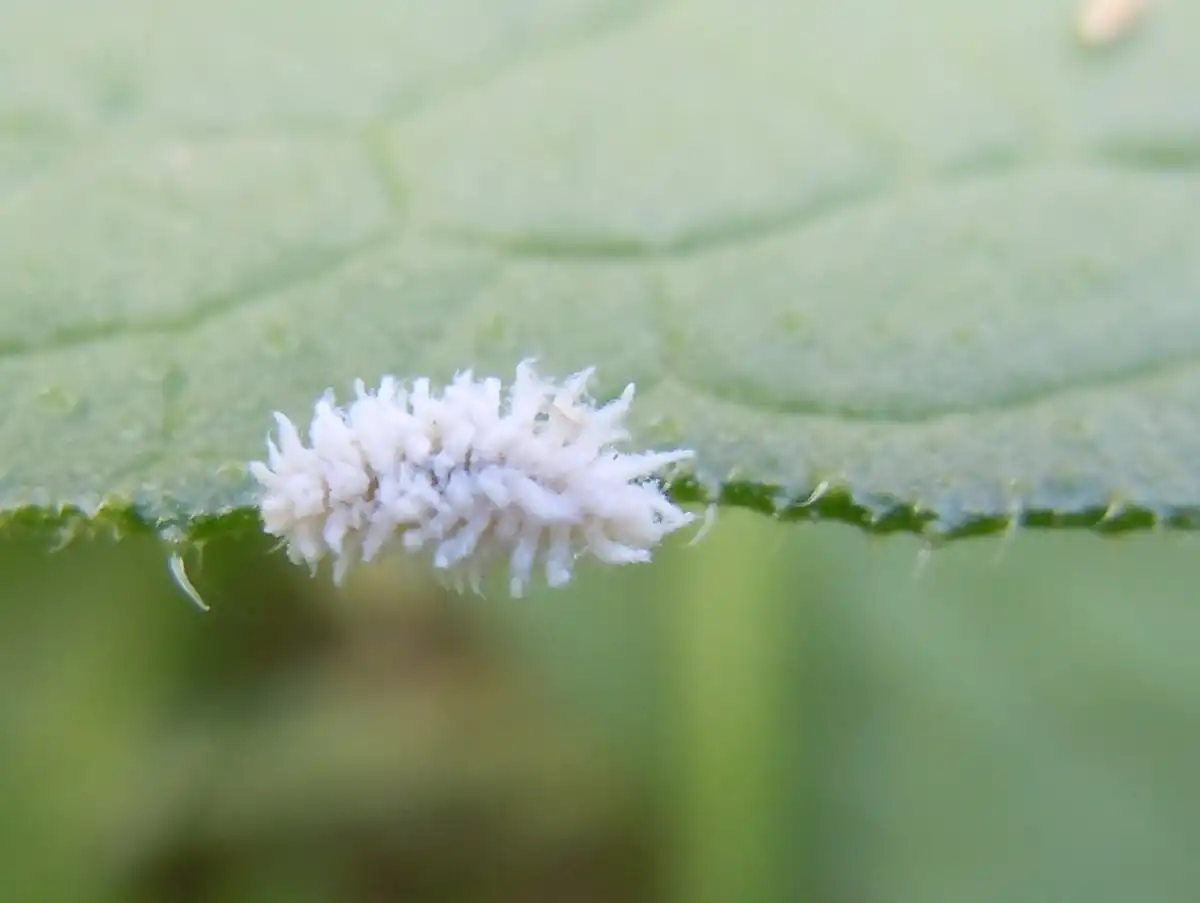 Рідко трапляється на пеларгоніях, але розпізнати його дуже легко: пухнасті білі грудочки вказують на появу шкідника в пазухах листя. Кущики виглядають млявими навіть після поливу, а зростання зазвичай зупиняється.