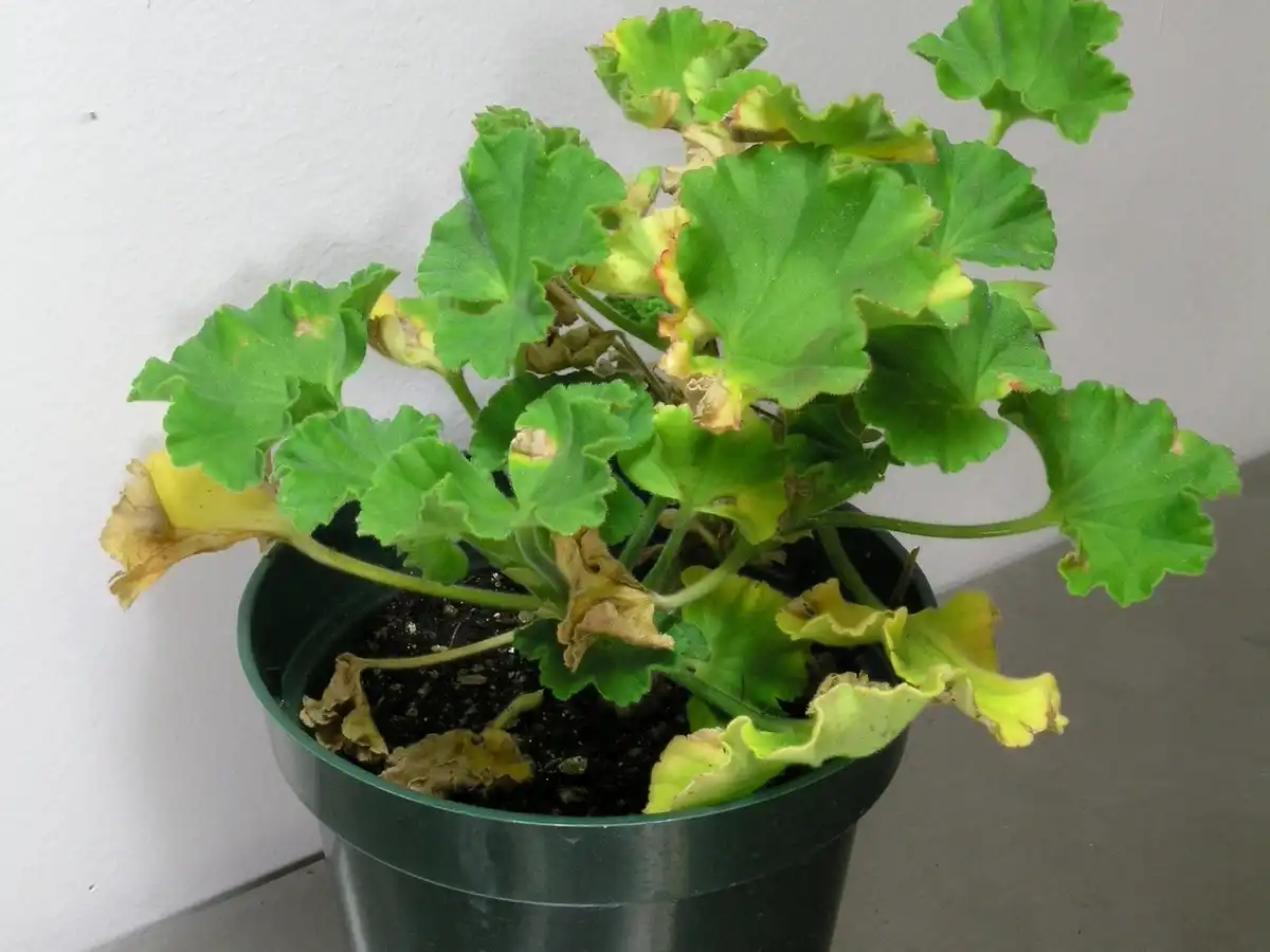 Перші сигнали про загнивання коренів - пожовтіння і опадання листя, але якщо ситуація запущена, пеларгонія швидко жовтіє цілком. Провокує поширення кореневих гнил завжди неправильний полив. Вирішити проблему можна, просушивши субстрат, змінивши частоту поливу, дозволяючи нормально підсихати ґрунту, зливаючи воду з піддонів. Якщо пеларгонія постраждала сильно, її доведеться пересаджувати з обрізанням та обробкою коріння або замінити молодою рослиною.
