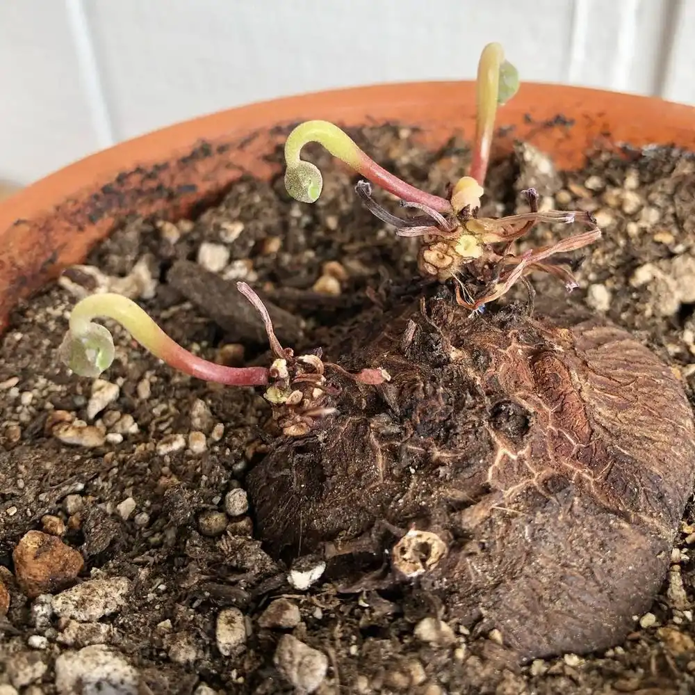 Бульби встановлюють так, щоб приблизно їхня третина залишалася над лінією грунту, дбайливо досипаючи субстрат з боків. Навіть трохи заглиблена посадка може бути згубною, тому краще переобережнювати. Орієнтуватися при посадці покупних голих бульб легко: верхня сторона у них опукла.