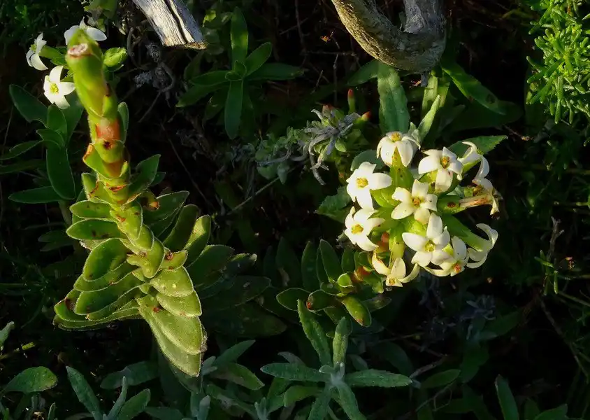Рохея ароматна (Rochea odoratissima, синонім Crassula fascicularis) - низькорослий, строгий напівчагарник з прямими пагонами, середнім жолобчасто-ланцетним листям і дуже щільними парасольками суцвіть.