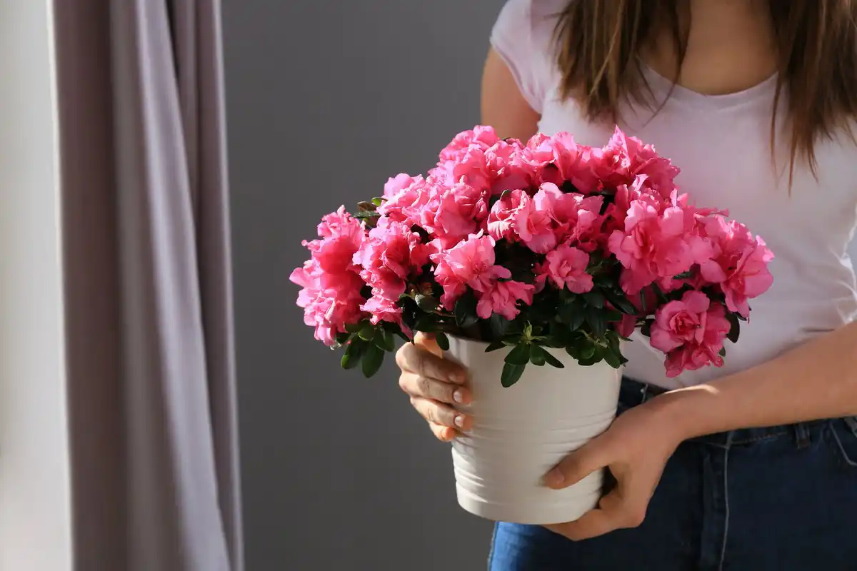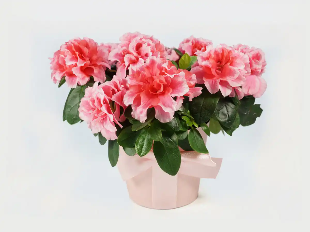 На відміну від примхливих камелій чи гарденій, кімнатні рододендрони (Rhododendron), або азалії, як їх називають за старою класифікацією, під силу вирощувати будь-кому. Щитки суцвіть з романтичних, прикрашених довгими витонченими тичинками квіток приховують красиве, зібране в мутовки шкірясте темне листя. Краса рододендронів у горщиковому форматі анітрохи не поступається ефектним садовим формам. Їхня розкішна палітра біло-рожево-фіолетової гами немов створена природою для розкішного подарунка.