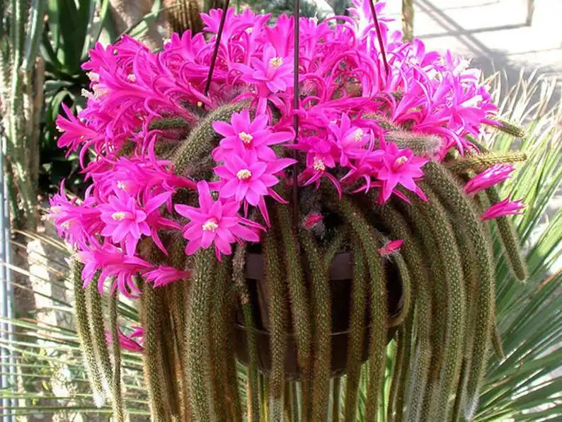 Зміїний кактус прославився нікчемними, немов довгі товсті батоги, пагонами. До 60 см у довжину, ребристі та колючі, вони красуються строгим візерунком з червоних щетинкоподібних колючок. На яскраві малиново-рожеві квітки до 9 см завдовжки хочеться милуватися нескінченно. Розпускаються квіти навіть біля основи пагонів, створюючи своєрідну шапку над довгими «змійками».