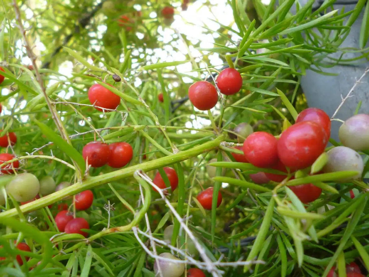 Плодоношення для аспарагусів - не така вже й рідкість, хоча на кімнатних рослинах дозріває зазвичай лише кілька плодів. Головне - не забути про необхідність штучно запилити квіти, використовуючи м'який пензлик.