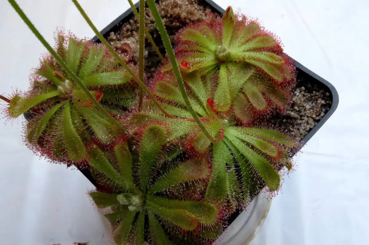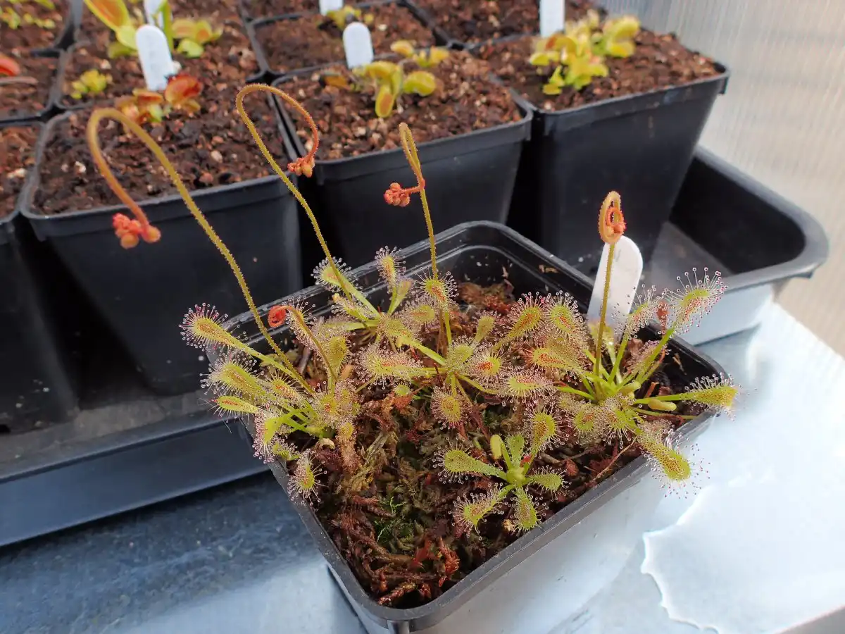 Росянки вирощують у плоских, низьких, широких ємностях з дренажними отворами та висотою не більше 8 см.