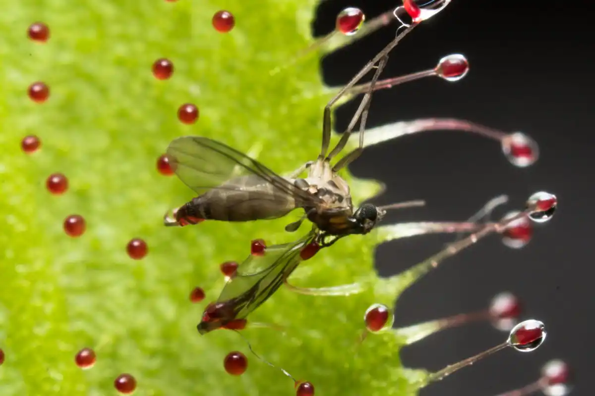 Волоски реагують миттєво, починаючи схилятися над комахою та запускаючи механізм згортання листа. Росянка здатна втримати муху протягом півгодини без згортання листя, але у більшості видів краю листя згортаються за кілька хвилин.