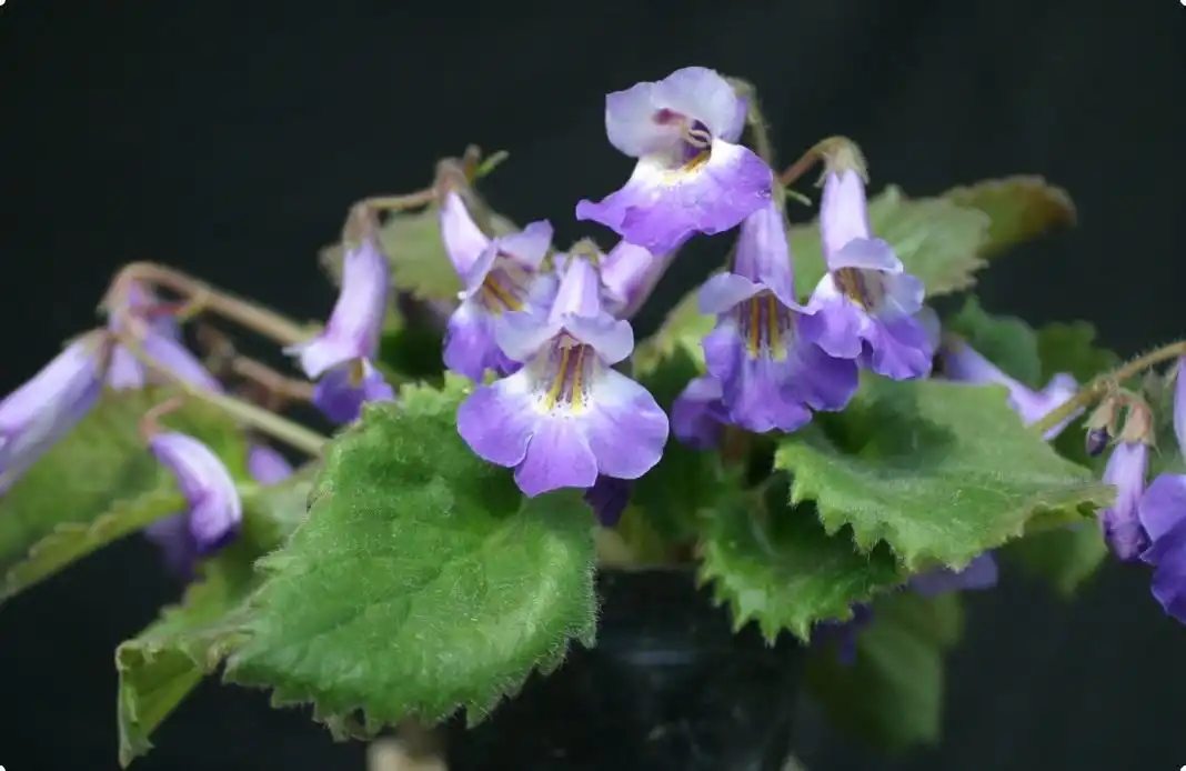 - «Лола» (Lola) – гарний сорт з великозубчастим ромбовидним листям зі сталевим відливом у зразково симетричній розетці та темно-бузковими дзвіночками квіток з яскравими помаранчевими та фіолетовими смугами;