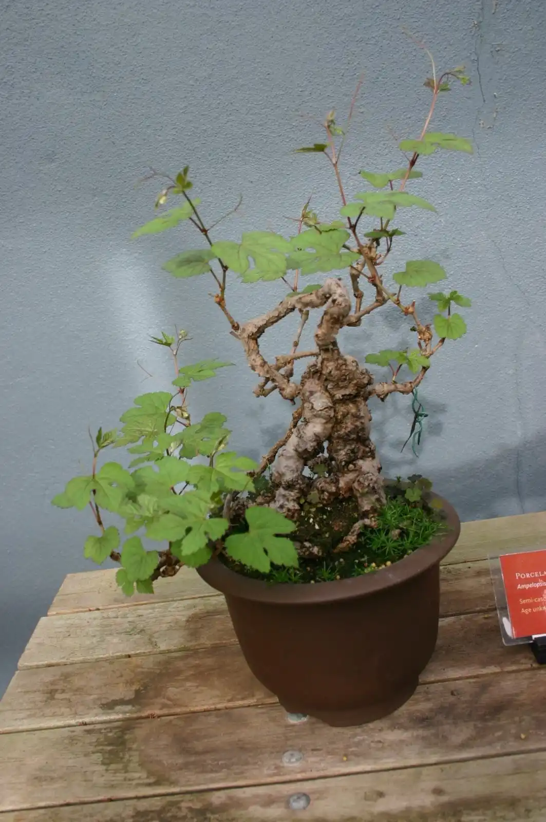 Завдяки нерівномірності строкатого візерунка здається, ніби на деякі листя рослини просто пензлем розбризкали фарбу. Цвіте непоказними та майже непримітними щитками. Плодоношення кімнатного ампелопсису, на відміну садового, дочекатися нелегко, оскільки він випускає ефектні ягоди лише у значному віці. Але видовище того варте. Плоди нехай і неїстівні, але здаються ідеально круглими кульками, наче виліпленими з порцеляни.