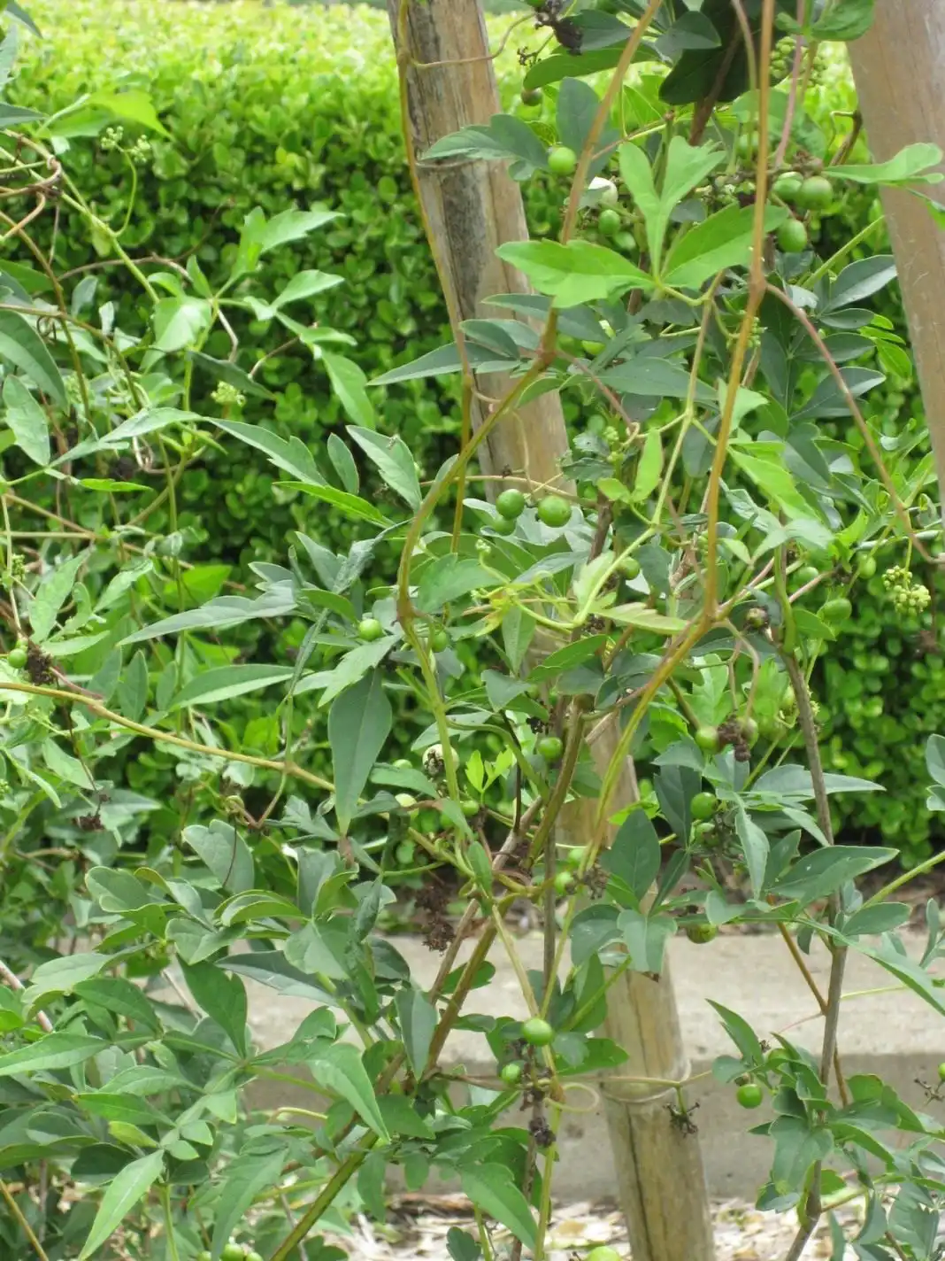 Виноградівник короткоквітконіжний (Ampelopsis brevipedunculata), який сьогодні ботаніки перекваліфікували на вигляд Виноградівника залізистого (Ampelopsis glandulosa), у нас продається під старим ім'ям, а іноді – і як ампелопсис уссурійський. Це найбільш поширена рослина серед виноградників, дуже гнучка ліана з червонувато-пурпурними пагонами довжиною до 2-3 м, настільки тонкими, що здається вражаючим, як при такій довжині вони можуть витримувати масу густо розташованого листя.