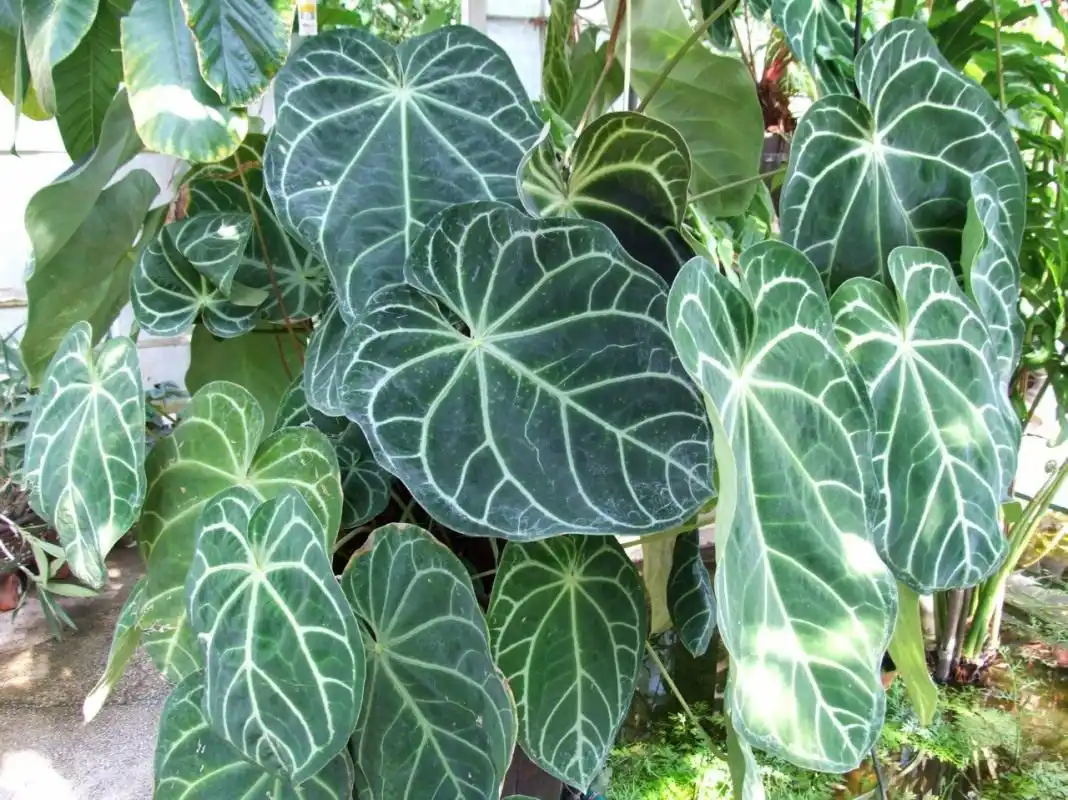Антуріум величний (Anthurium magnificum) зовсім не схожий на своїх красивоквітучих побратимів. У цього виду найбільш декоративною частиною рослини є розкішне бархатисте листя. Серцеподібні, великі, з унікальною текстурою і темно-зеленим забарвленням, вони виглядають як витвір мистецтва завдяки світло-зеленим, іноді оливковим прожилкам, що розбігаються від черешка і перетворюють рослину на графічне диво. А ось суцвіття-початки абсолютно непоказні і більше схожі на подорожник.