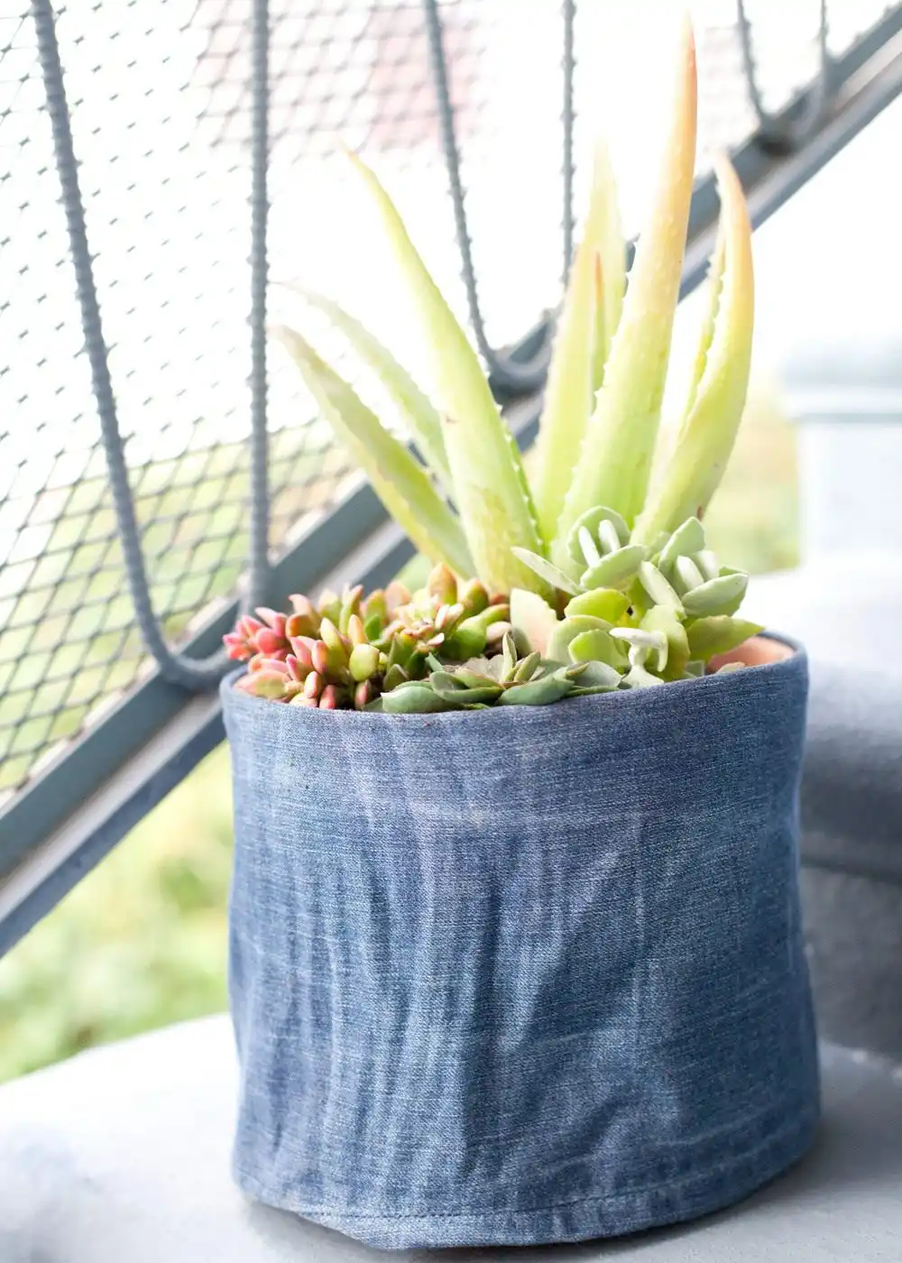 Не порушуючи форми горщика і роблячи його візуально затишнішим, ви привнесете в обстановку кімнати нові текстильні акценти і водночас нову атмосферність. Особливо гарний цей варіант для декорування кашпо на зиму, оскільки він додає будинку особливу сезонність. Та й приємний бонус — захист субстрату від переохолодження, потоків холодного повітря, холодних поверхонь і протягів — напевно припаде до душі теплолюбним зеленим красеням.