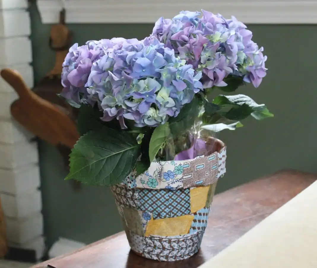 Вам напевно доводилося зустрічати в сувенірних магазинах і посудних крамницях чарівні комплекти «одягка» для чайників і заварників, які навіть найпростіше начиння перетворюють на маленький шедевр. Схожий «одяг» є і для квіткових горщиків. Щоправда, з ними все простіше: достатньо пошити або зв'язати маленьку муфту за розмірами горщика, що щільно охопить стінки. Такі «одяжки» бувають або в'язаними, або зшитими з тканини. Печворк, клаптикове шиття, розкішні ситцеві, бавовняні, парчові та інші інтер'єрні та оббивні тканини в тон текстилю в кімнаті або різноманітні варіанти ручного в'язання спицями та гачком - вибирати є з чого.