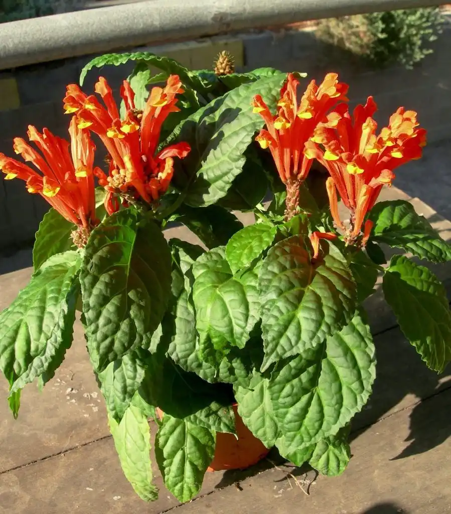 Коли дивишся на яскраві вогняні суцвіття шоломника коста-ріканського, перед очима тут же виникають бачення розкішних феєрверків. І форма суцвіть, і їхня будова нагадують про піротехнічні чудеса. Цю ілюзію лише посилює контраст з надзвичайно красивою, ніби створеною з тканини листям у незвичайному кущику. Шоломник - це справжній кімнатний екзоти, дещо специфічний за своїми вимогами до догляду, але зовсім не складний у вирощуванні. Його літнє цвітіння претендуватиме на статус найяскравішого видовища у вашому будинку.