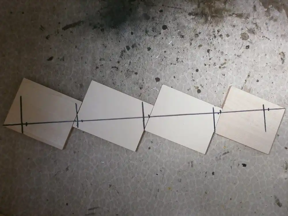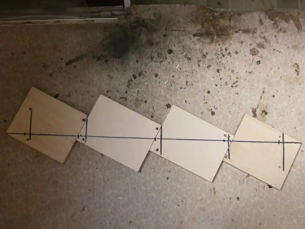 Тепер розмічаємо основу майбутньої полички для квітів, свердлимо отвори, і прикручуємо самі осередки, чергуючи їх праворуч і ліворуч.